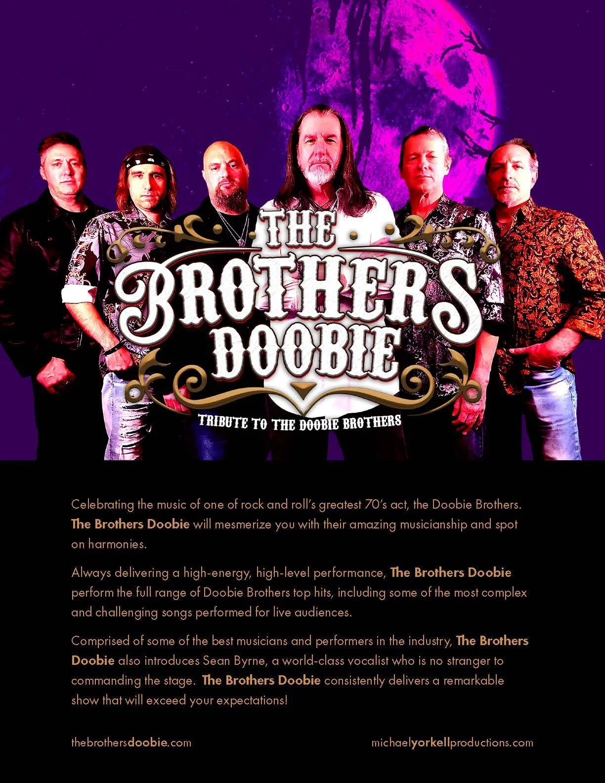 Comprised of some of the best musicians and performers in the industry, The Brothers Doobie also introduces Sean Byrne, a world-class vocalist who is no stranger to commanding the stage. THE BROTHERS DOOBIE - Tribute To The Doobie Brothers consistently delivers a remarkable show that will exceed your expectations!